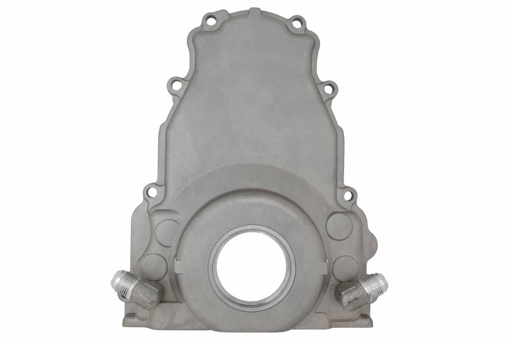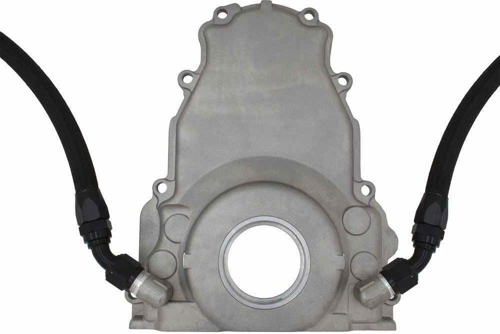 This Timing Cover will NOT work with factory LS A/C compressors in the factory low passenger side location.