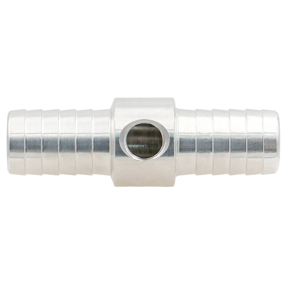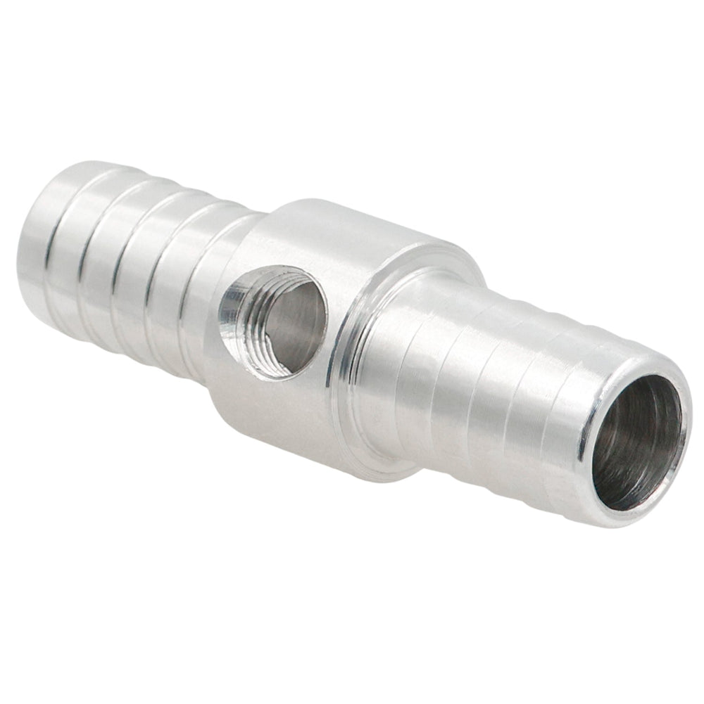 Our 5/8" Hose Barb Coupler with 1/8" NPT Port is designed to splice into your heater core return line while providing an additional 1/8" NPT port for pressure or temperature monitoring sensors. Precision-machined from aerospace-grade, USA-produced billet aluminum, this fitting ensures durability and reliability. The integrated hose stop flange in the center prevents over-installation, ensuring an even clamping surface on both sides of the splice. Made in Wichita, Kansas, this fitting is a simple and effective solution for adding sensor capability to your cooling system.