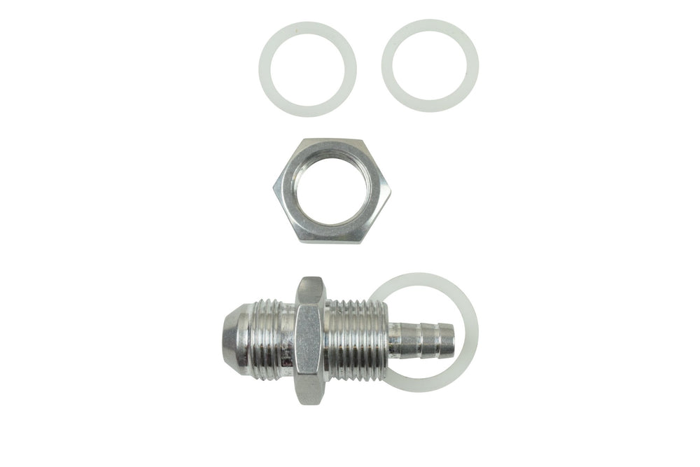 -8AN to 5/16 inch (.3125) hose barb, bulkhead fitting (bare aluminum)