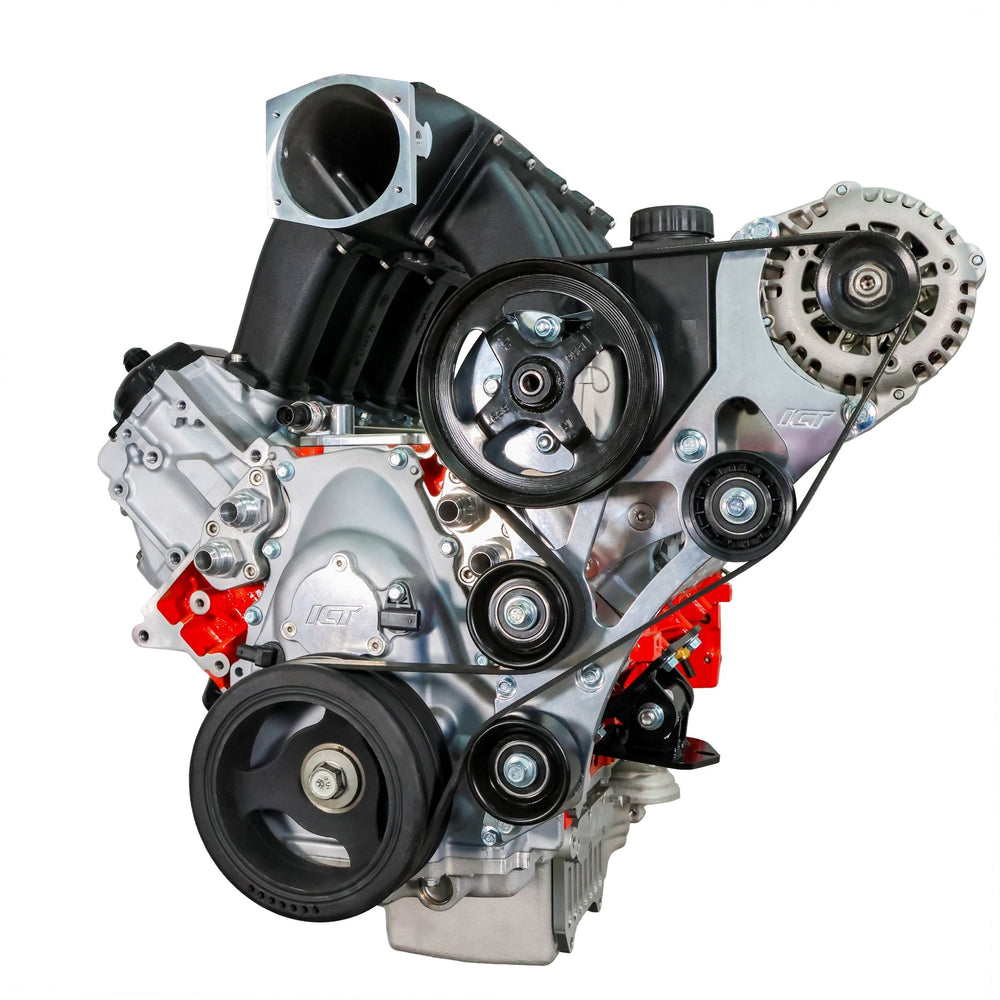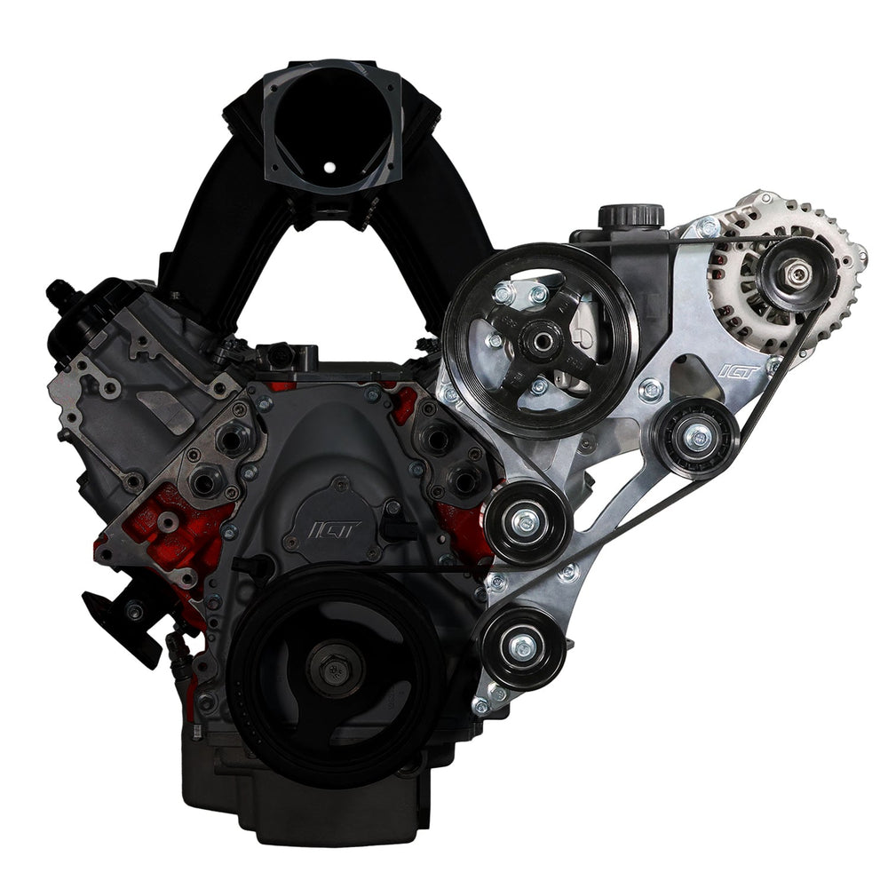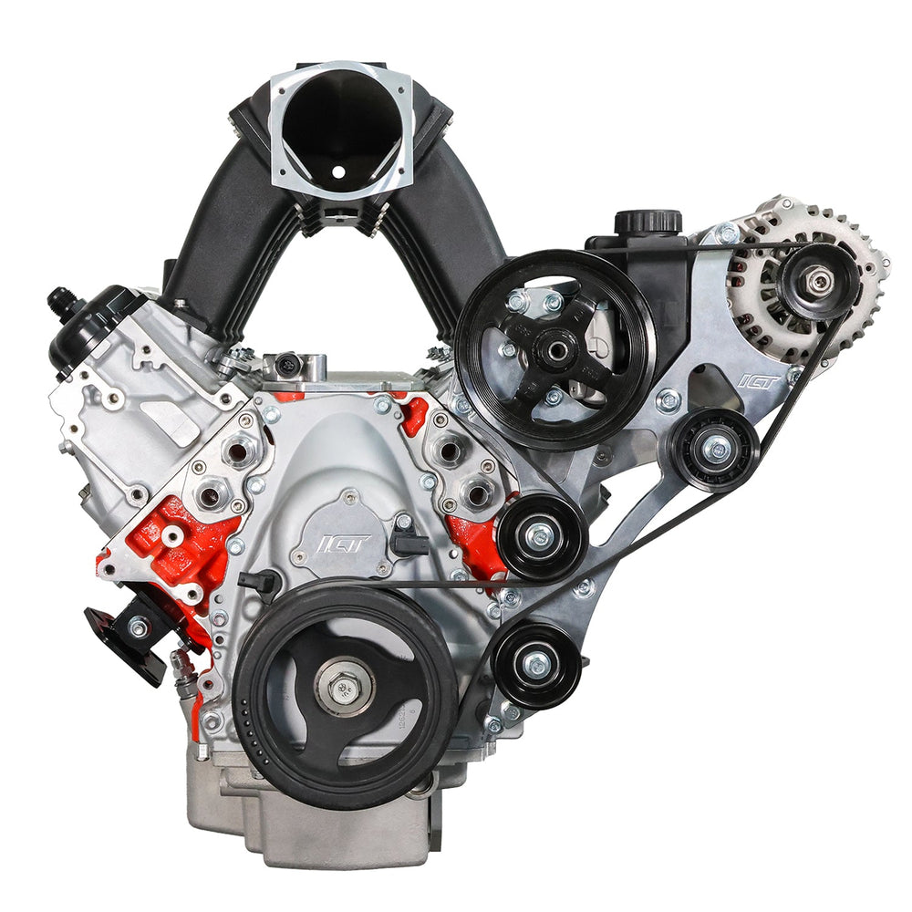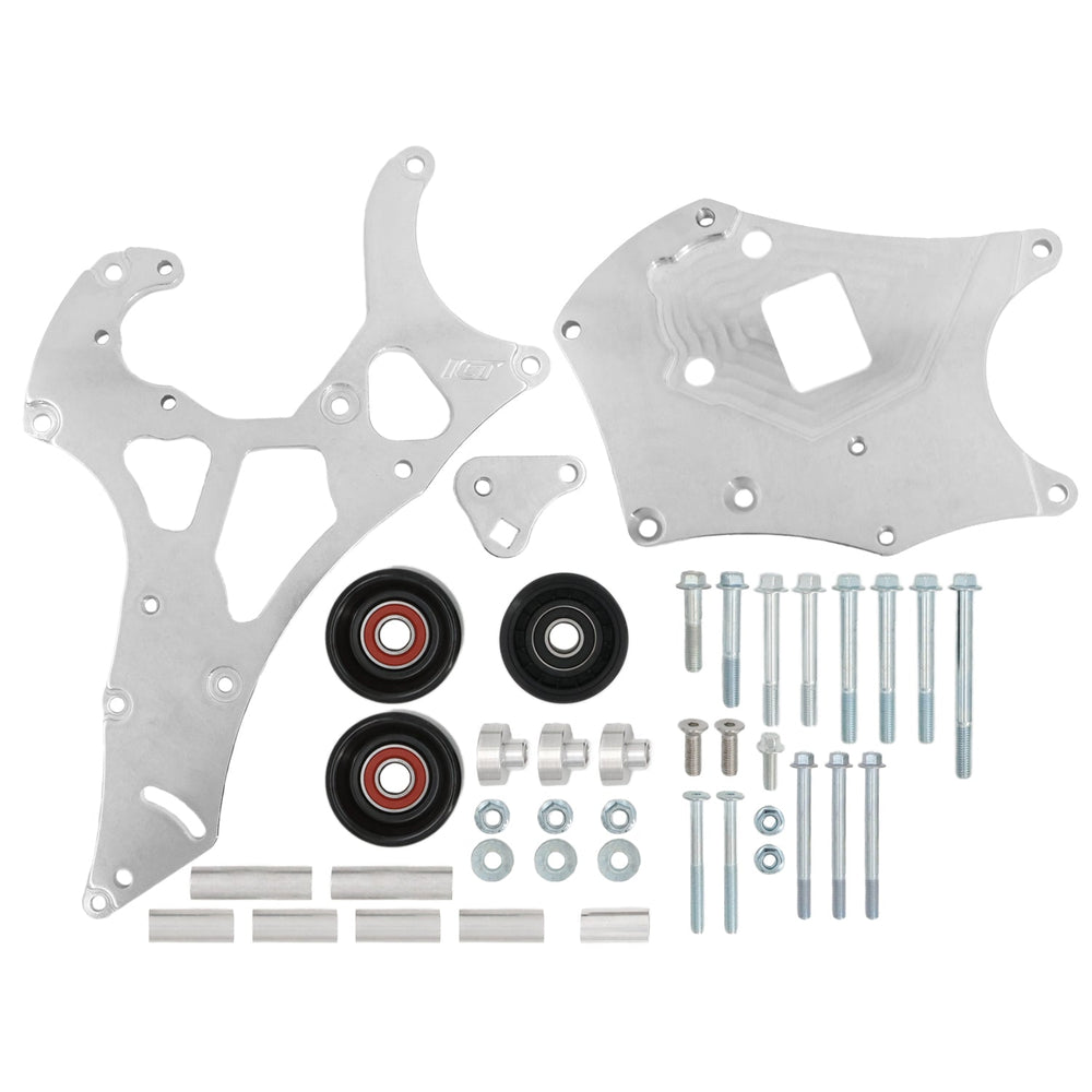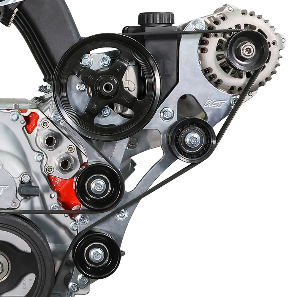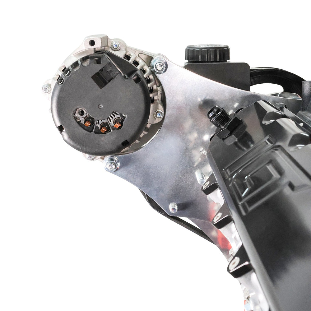 Our Gen V LT Camaro Electric Water Pump Alternator and Power Steering Bracket Kit is designed to eliminate belt interference while maintaining full functionality of your accessories. With a carefully engineered layout, this bracket kit ensures a hassle-free installation when using an electric or remote water pump. The integrated tensioner allows for precise belt tension adjustments and locks it in place, preventing belt slip or loss during hard deceleration. Built for racers but designed with drivability in mind, this kit allows you to retain power steering for an optimal driving experience. Precision-machined from aerospace-grade billet aluminum, this bracket kit delivers durability and performance in one package.