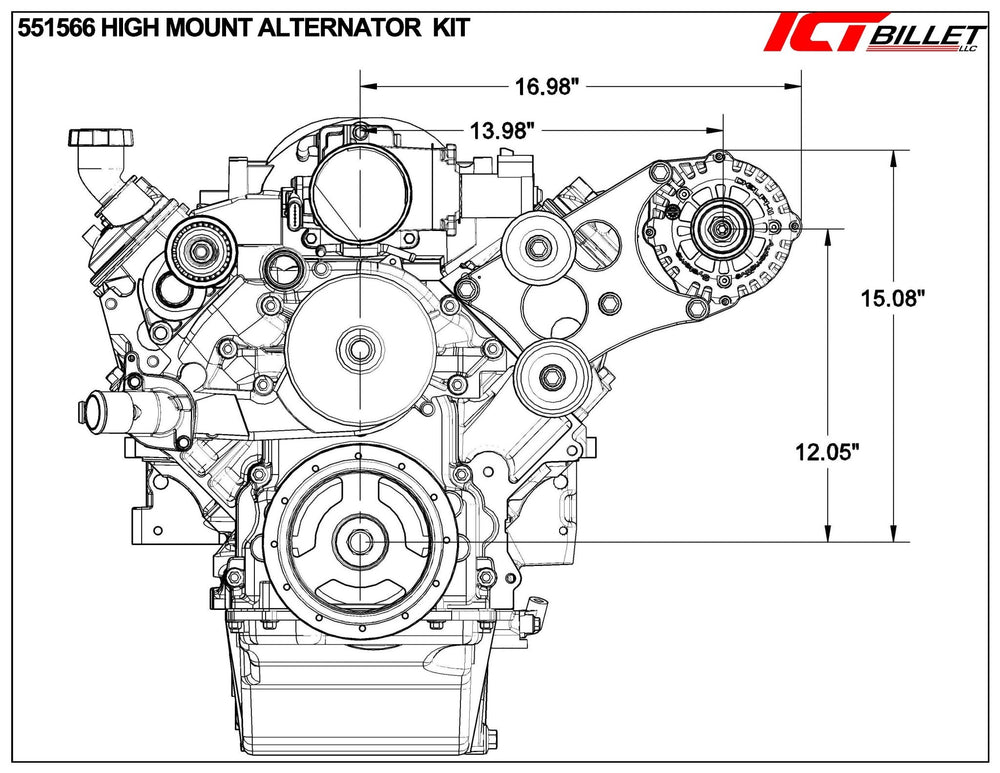 755K6 (75.5 inch) Belt w/ 105 amp alternator (ICT # ALT300) 763K6 (76.3 inch) Belt w/ 140-160 amp alternator (ICT # ALT302) 775K6 (77.5 inch) Belt w/ Corvette (or 2010-up Camaro, CTS-V, SS) alternator with 551905 alternator adapter (top position)
