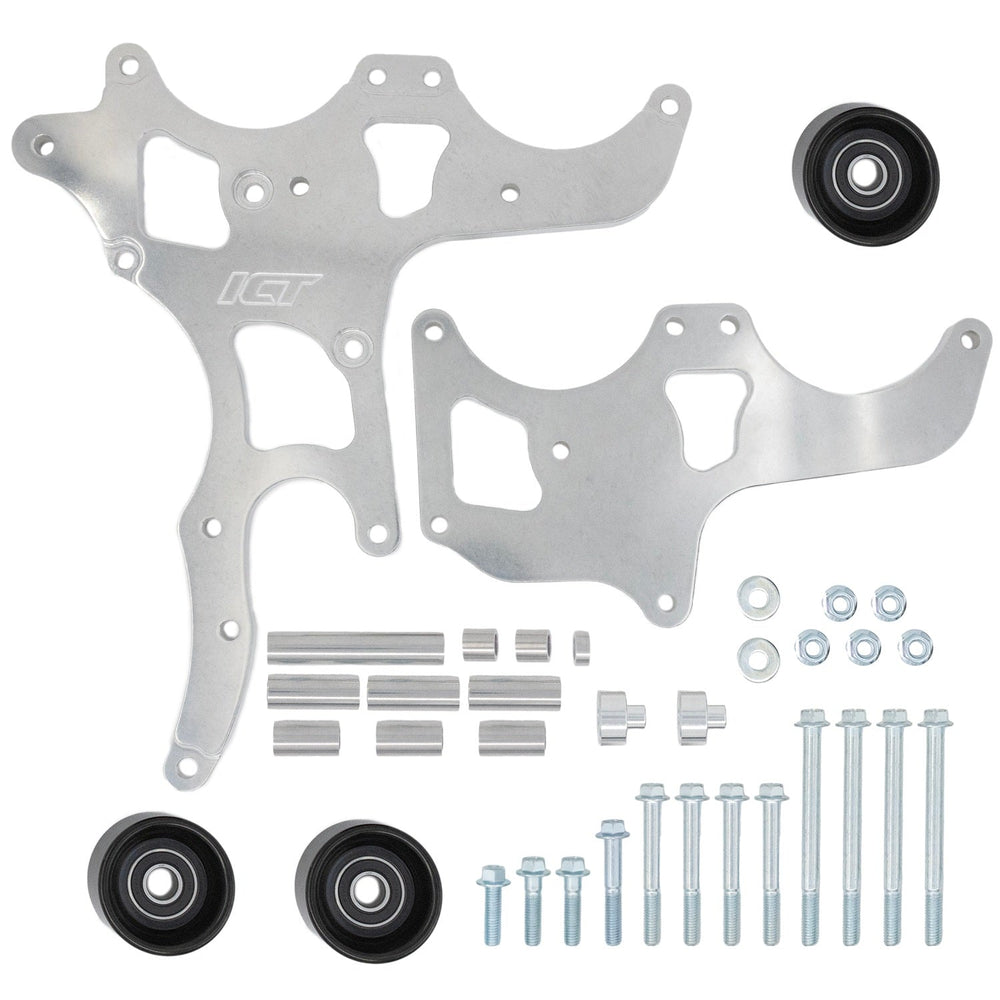 Power your high-demand electrical systems with this LS dual alternator and power steering bracket kit. Designed to mount dual alternators, it supports 105amp, 145amp, 160amp GM alternators, and larger aftermarket options, making it ideal for builds with increased electrical needs. Whether you’re adding subs to your vehicle or running other power-hungry accessories, this kit is exactly what you need. It retains the factory location for your power steering pump, ensuring compatibility and ease of installation. Crafted from aerospace-grade billet aluminum, it offers unmatched strength, lightweight performance, and a sleek finish. Perfect for high-performance and custom applications, this bracket kit delivers power, durability, and style in one package.