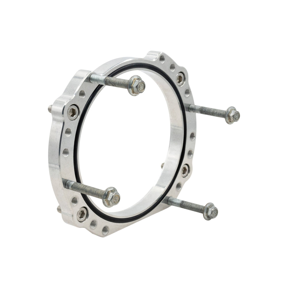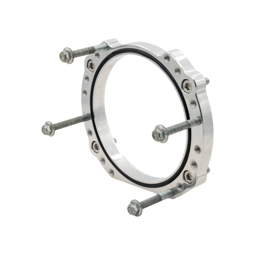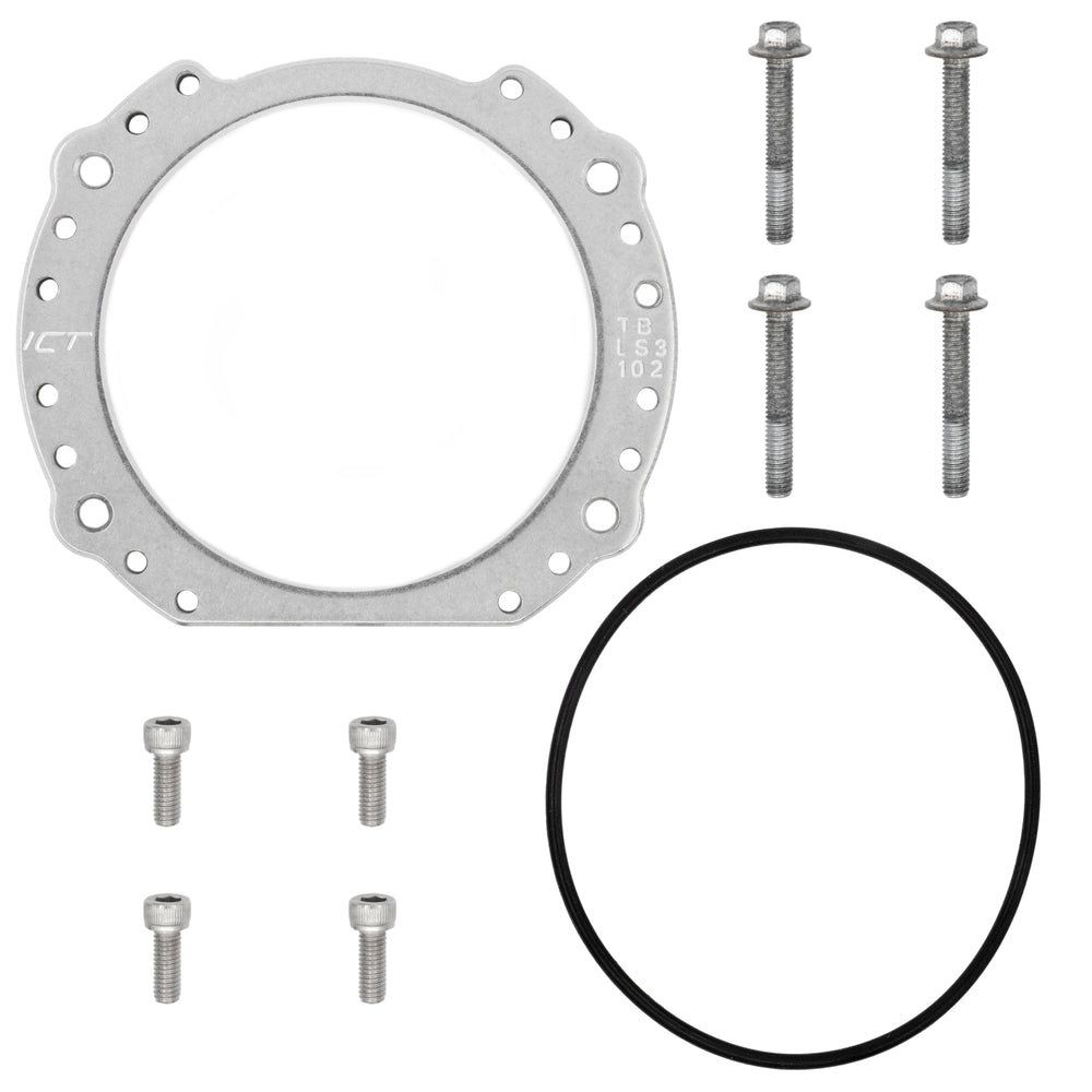 Our LS3 Intake to 102mm Throttle Body Rotation Adapter is the perfect solution for upgrading your LS3 throttle body to a larger 102mm throttle body. Designed to provide a smooth transition for incoming air, this 3D-cut adapter enhances performance and airflow efficiency. The adapter also allows you to rotate the 102mm throttle body, providing the flexibility needed for hood clearance, supercharger snout clearance, or accessory drive clearance. Crafted from billet aluminum, it’s built for strength, durability, and long-lasting performance..
