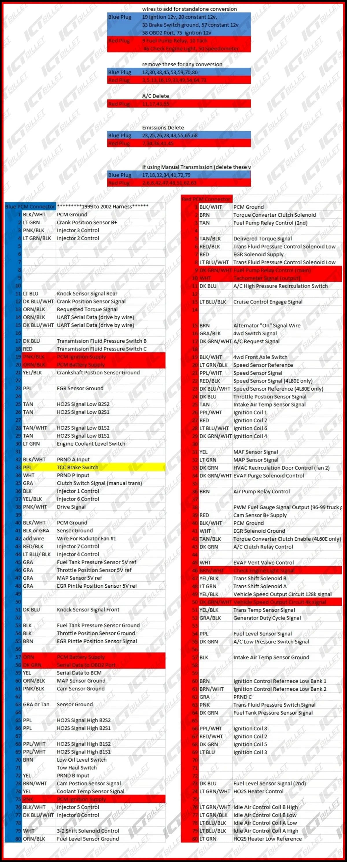 Did you recieve a big bulky wiring harness with your engine? Usually the answer is yes. Now there is nothing wrong with that, but usually we see customers wanting to hide as much wiring as possible. There are options for stand alone harnesses that were made for this exact issue, and they are pricey. There are MANY things that you will not be using in that harness. Things like ABS, traction control, theft deterrent systems, electronic brake control module, ect. will not be used. Below is a wiring guide that gives you the location of the wires that you have to have to make your engine run. This guide is for Gen. 3 engines, there could be differences with the Gen. 4 engines.