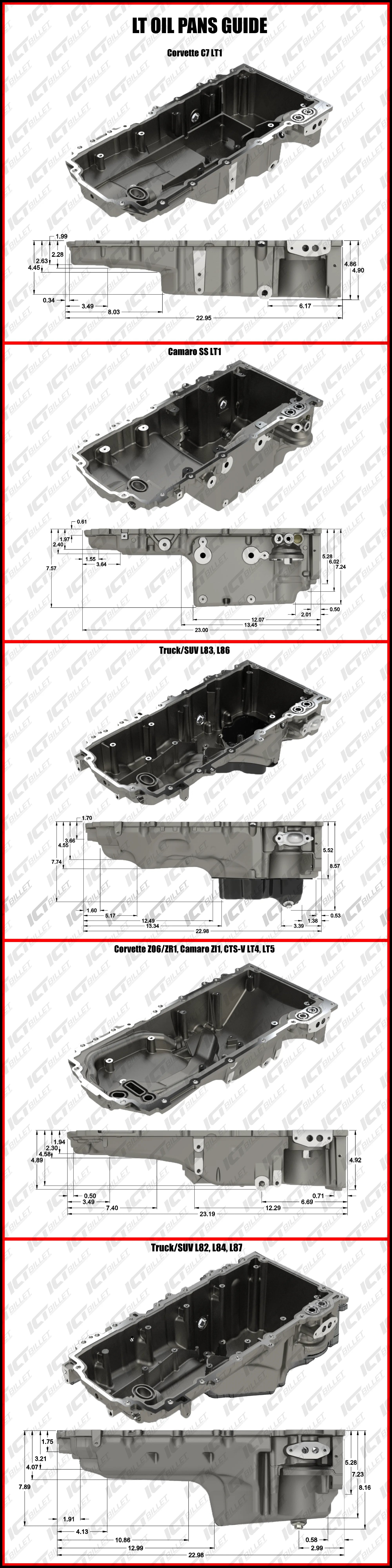 Finding the correct oil pan for your swap is one of your first steps before installing your engine. We make this easy by providing measurements for the common pans below and by using our vehicle swap sheets that tell you exactly which part number fits your specific make and model. No need for any guesswork!