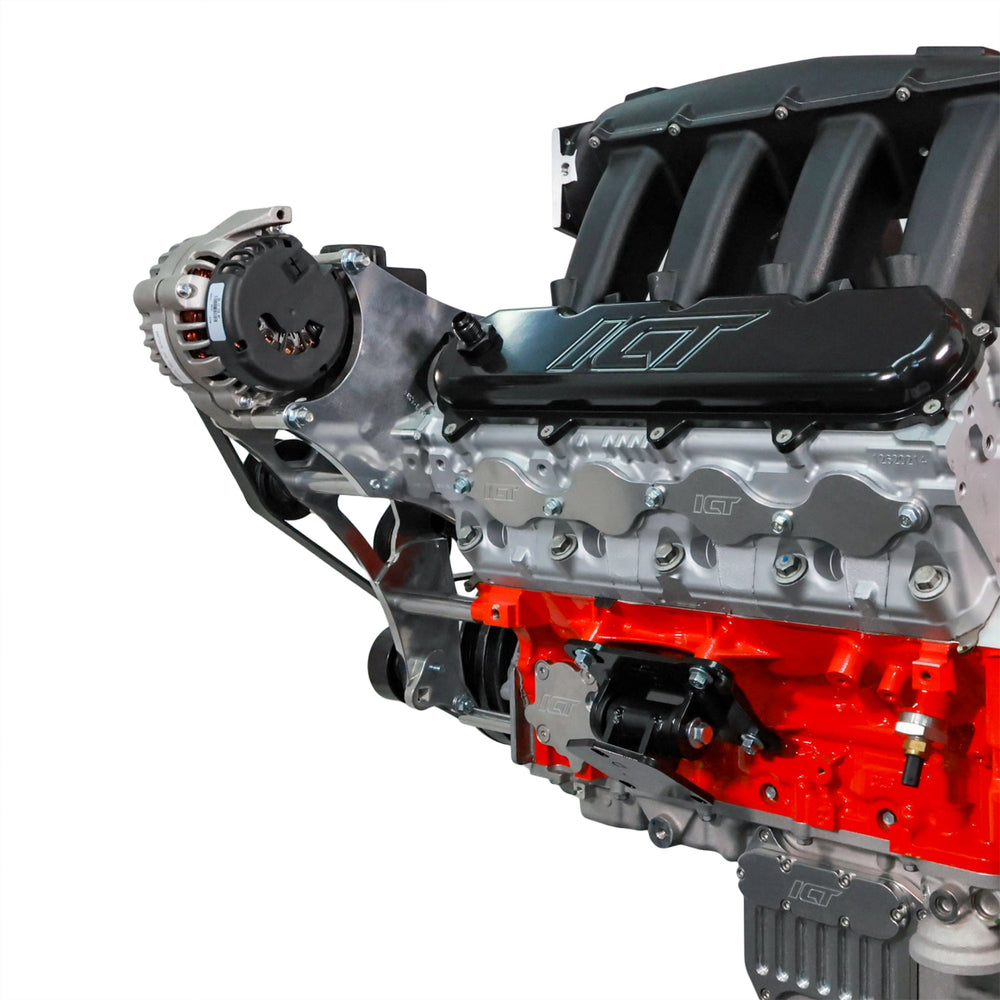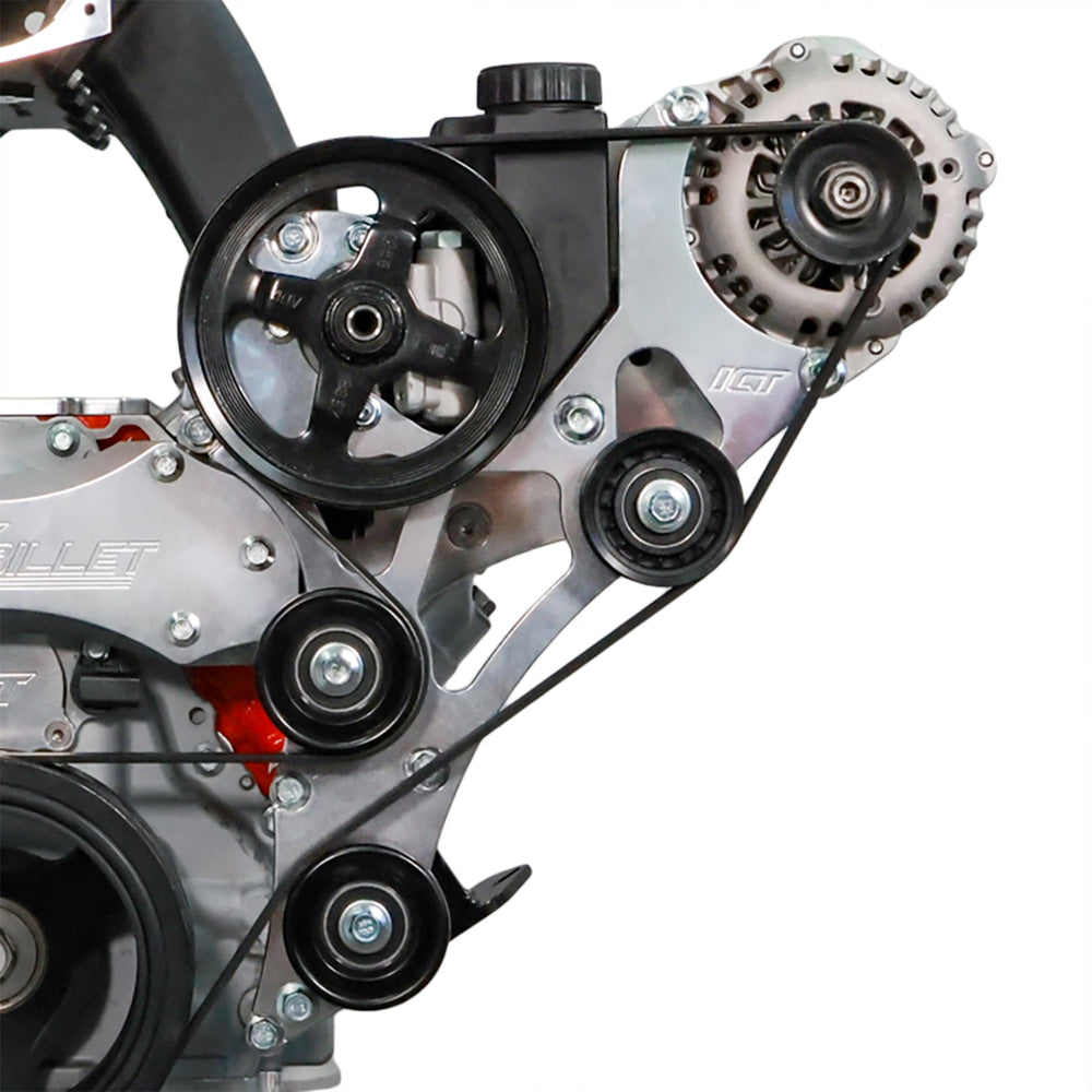 Our Gen V LT Truck Electric Water Pump Alternator and Power Steering Bracket Kit is designed to eliminate belt interference while maintaining full functionality of your accessories. With a carefully engineered layout, this bracket kit ensures a hassle-free installation when using an electric or remote water pump. The integrated tensioner allows for precise belt tension adjustments and locks it in place, preventing belt slip or loss during hard deceleration. Built for racers but designed with drivability in mind, this kit allows you to retain power steering for an optimal driving experience. Precision-machined from aerospace-grade billet aluminum, this bracket kit delivers durability and performance in one package.